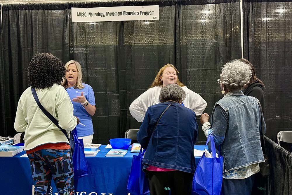 Representatives from MUSC's Neurology and Movement Disorders team talk with a group of women at the Senior Expo.