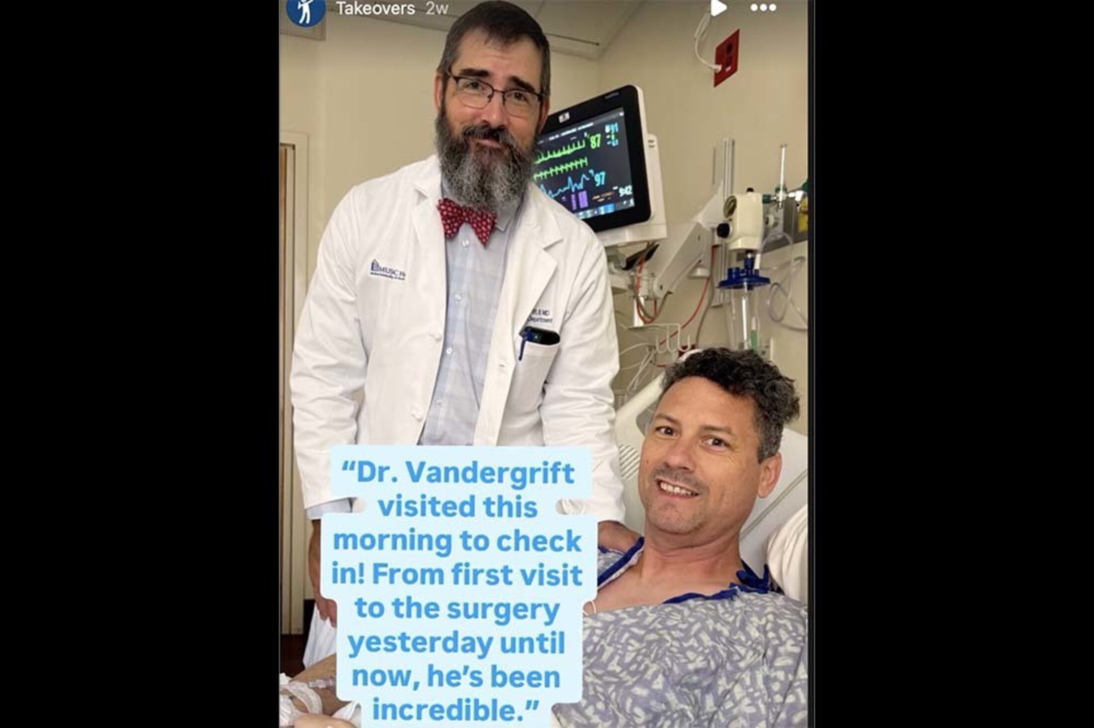 Vandergrift, who is not a social media user – “I don’t even have Facebook,” he said – learned about Harrison’s posts on Instagram from nurses who told the brain surgeon he was Instagram-famous. He’s glad Harrison felt comfortable going public with his experience. “I think anytime a patient shares a story, there's gonna be somebody out there that maybe has a similar story that just hasn't come to the appropriate medical attention.”